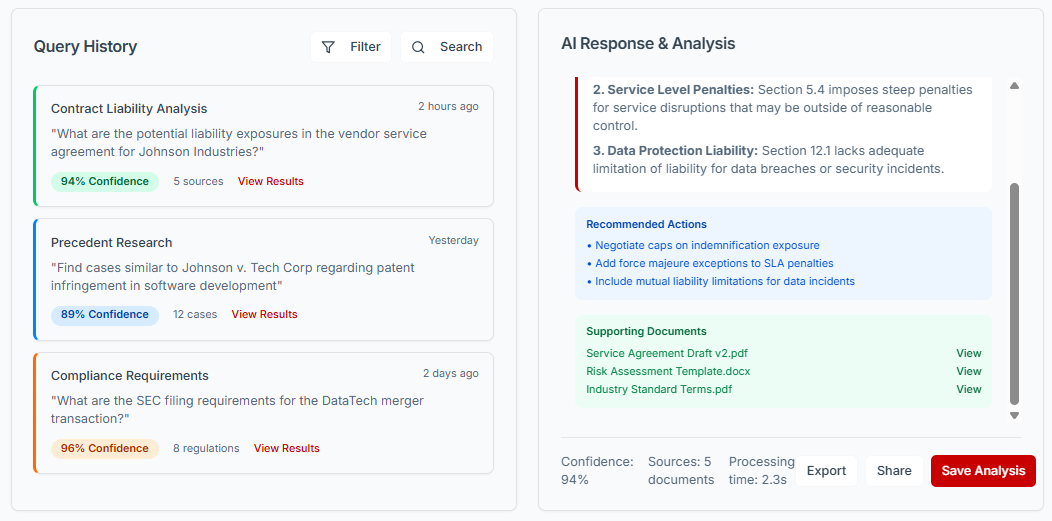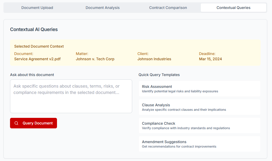 From within Oxygen, launch context-aware AI queries that reference the current matter, client, documents, and deadlines.