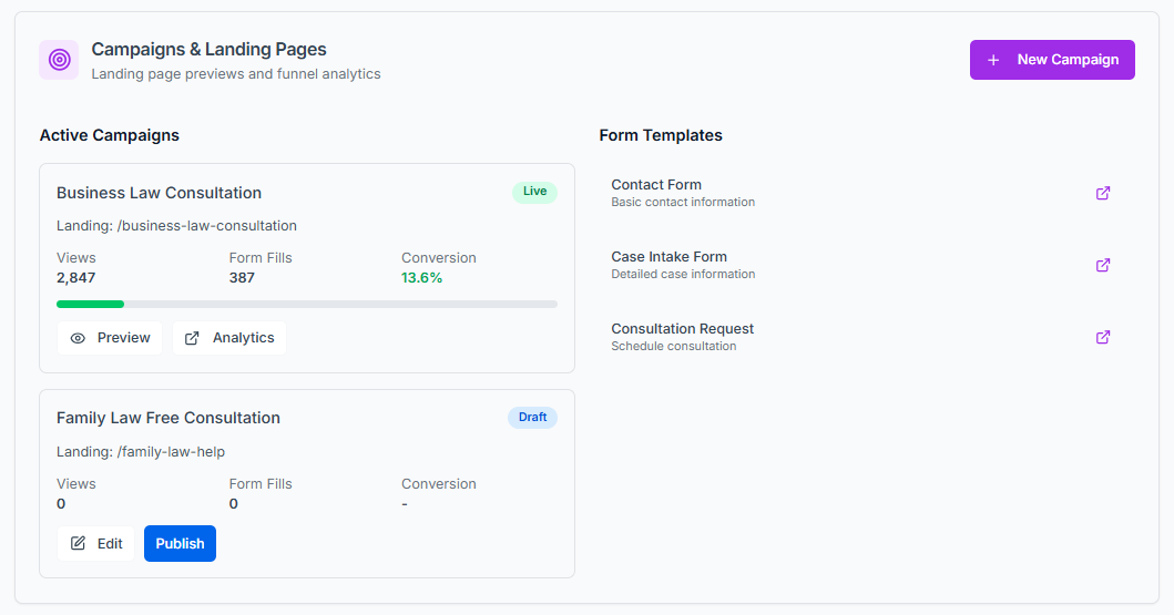 Build campaigns and landing pages